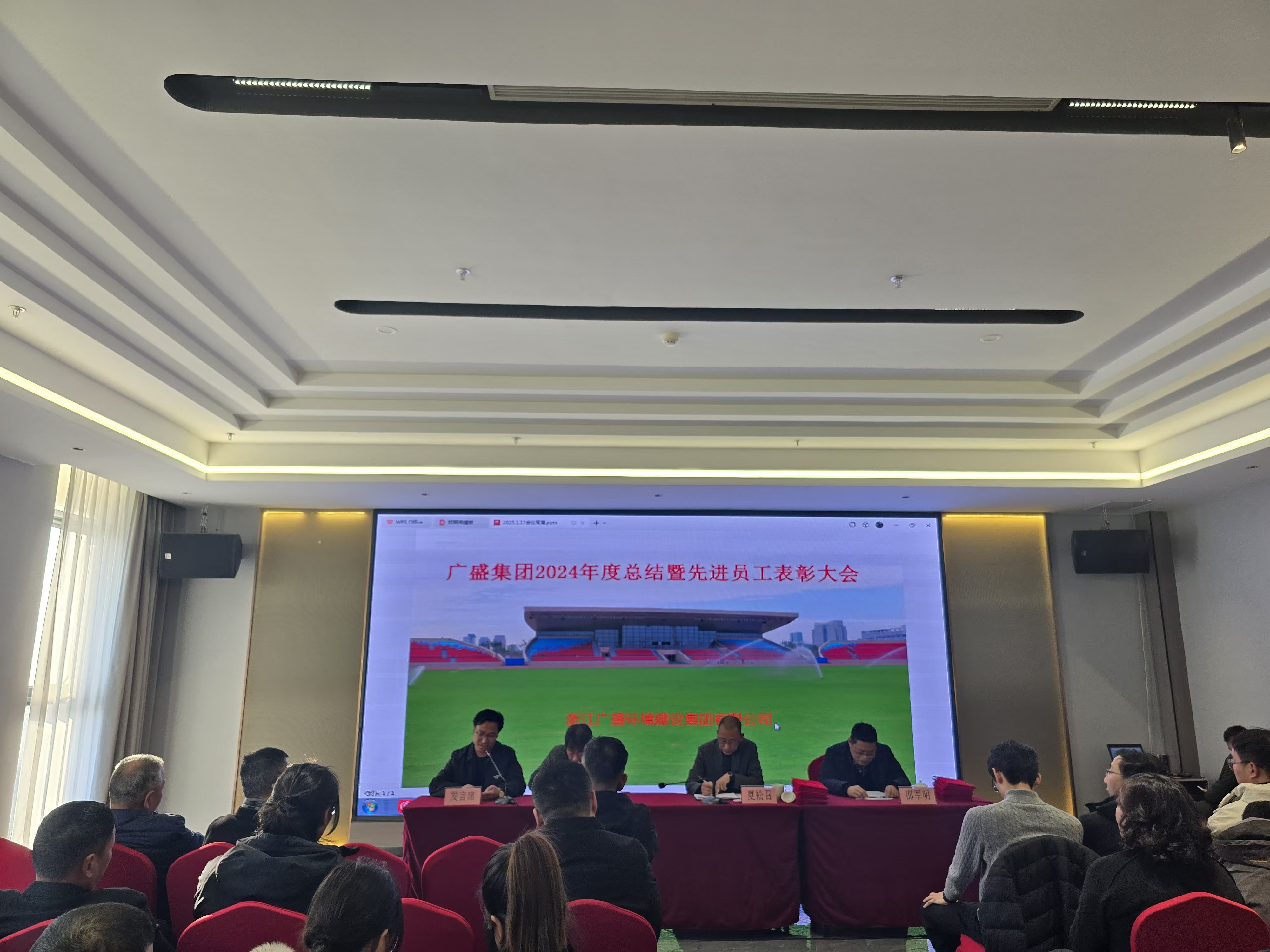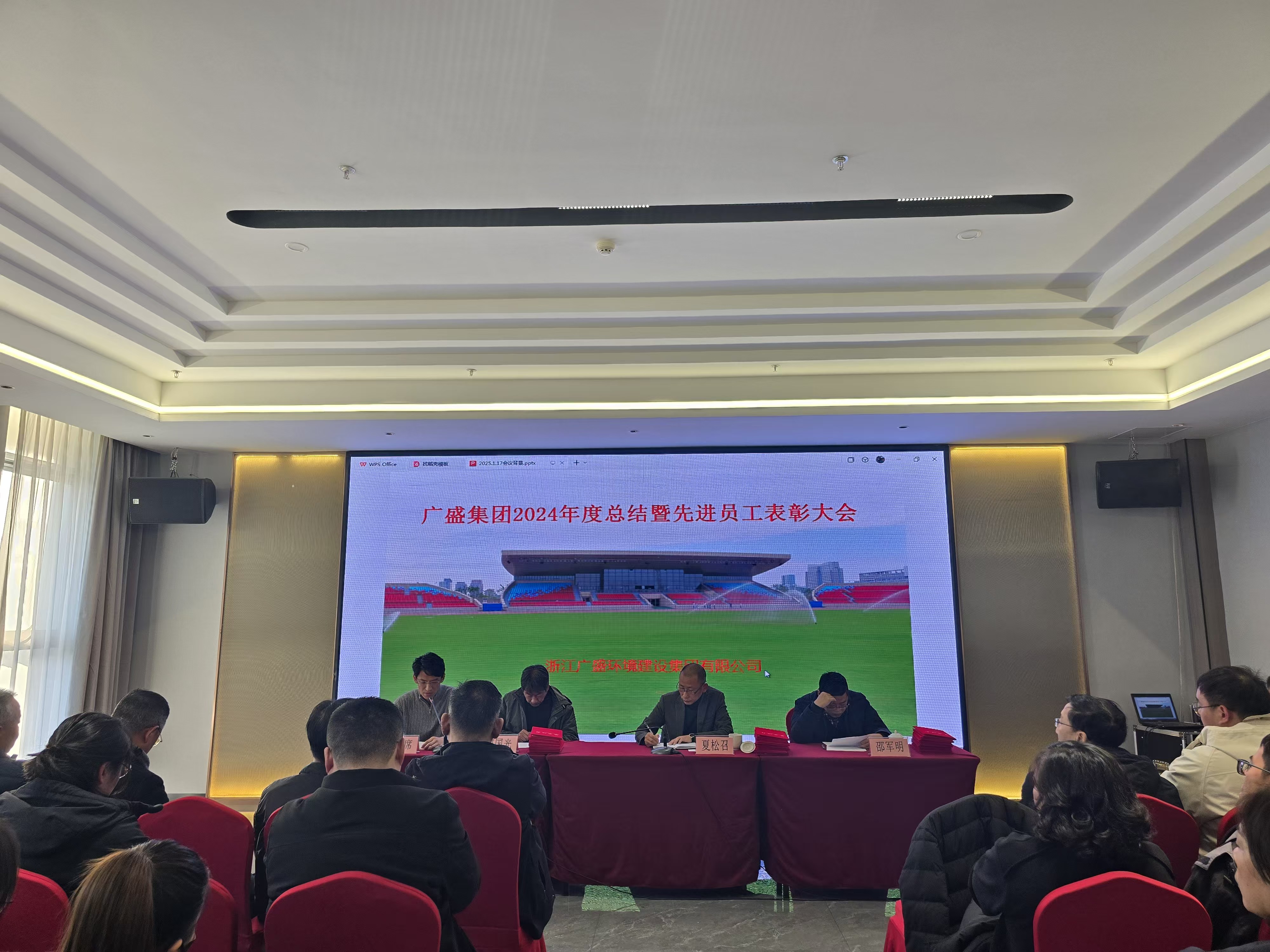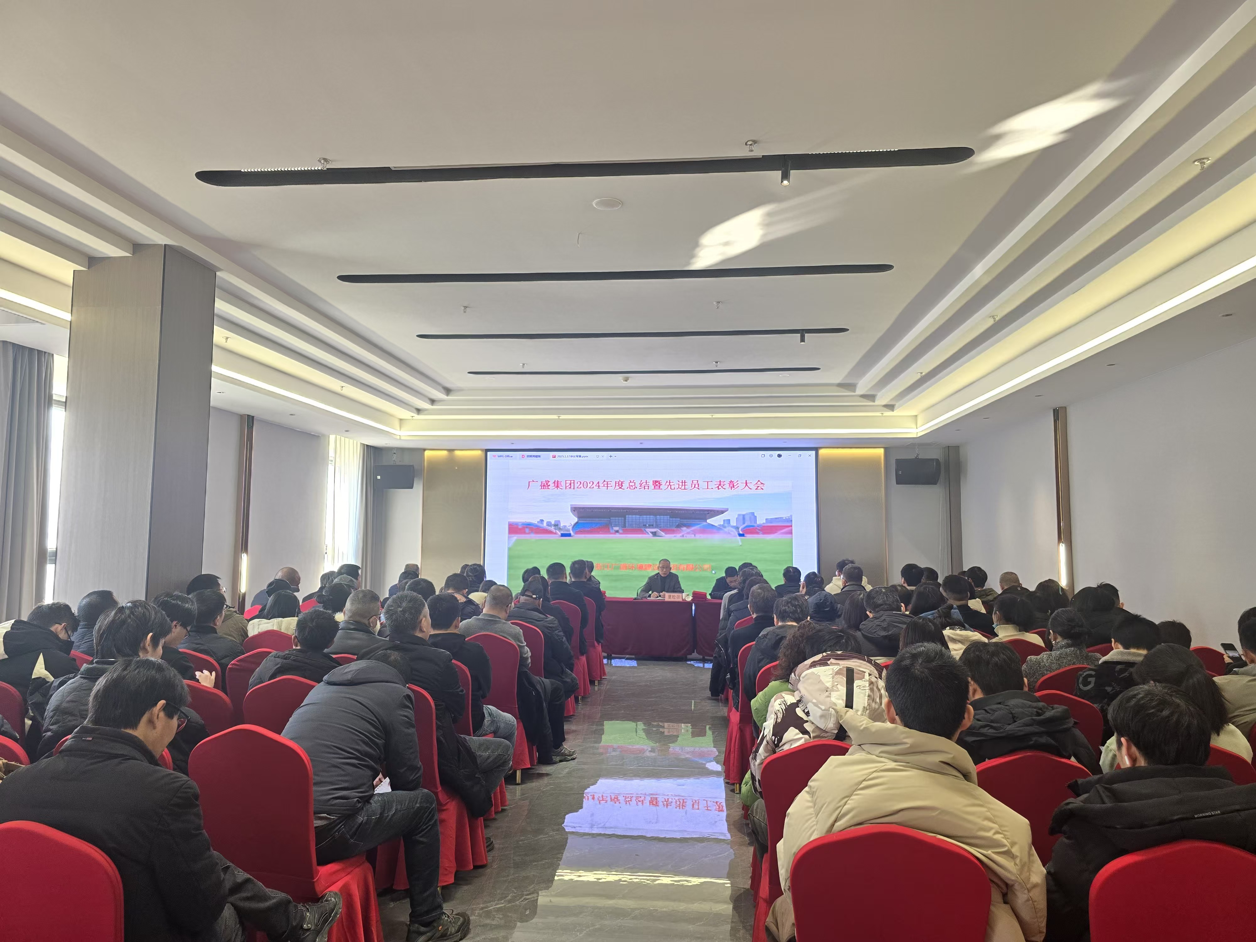 律回春渐,新元肇始,又是一年辞旧迎新时。1月17日下午,广盛集团2024年度总结表彰大会隆重召开。定海怡东禧悦大酒店云海厅座无虚席,集团领导、各子(分)公司负责人及员工等100余人参加此次会议,会议由集团董事长夏松召亲自主持。